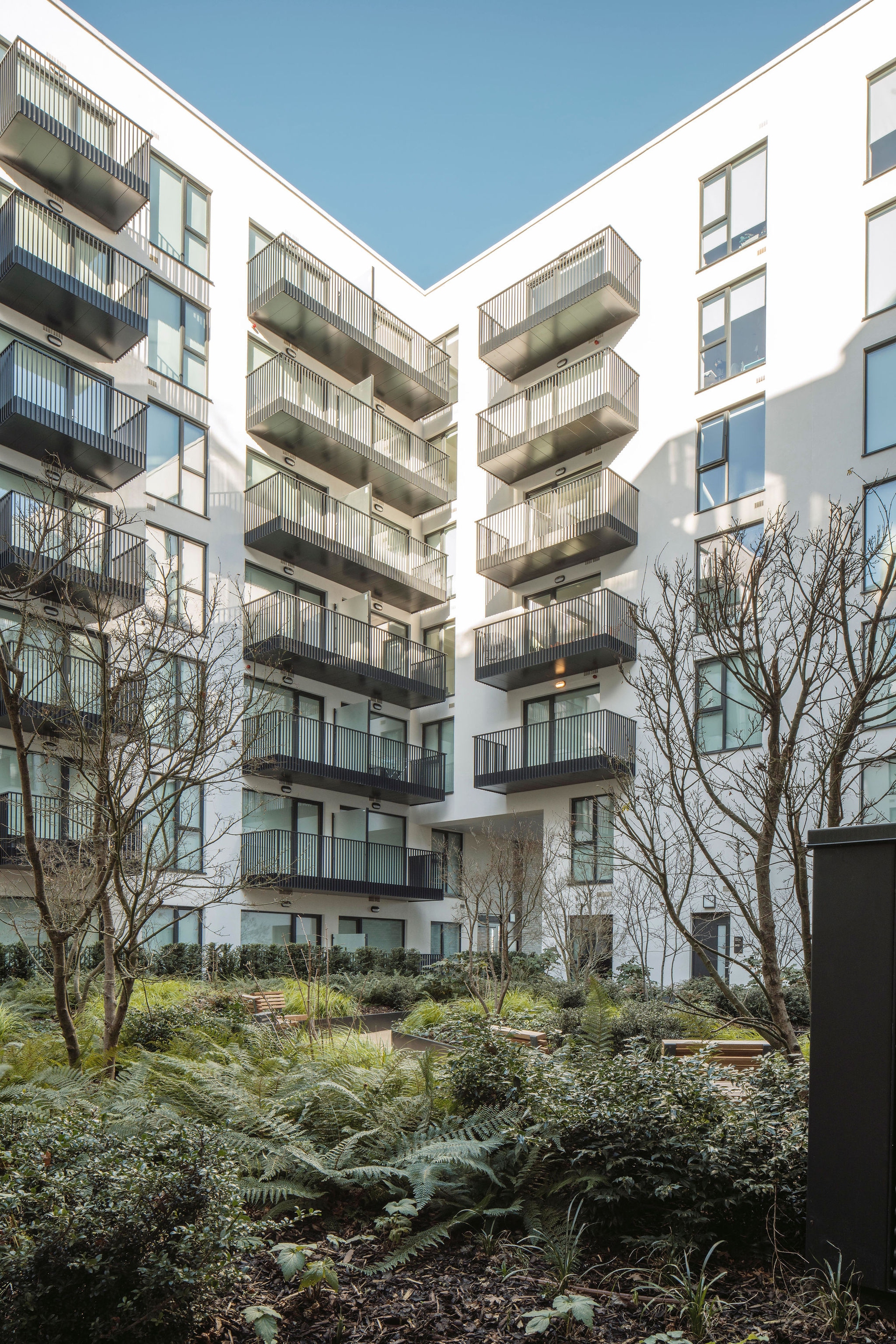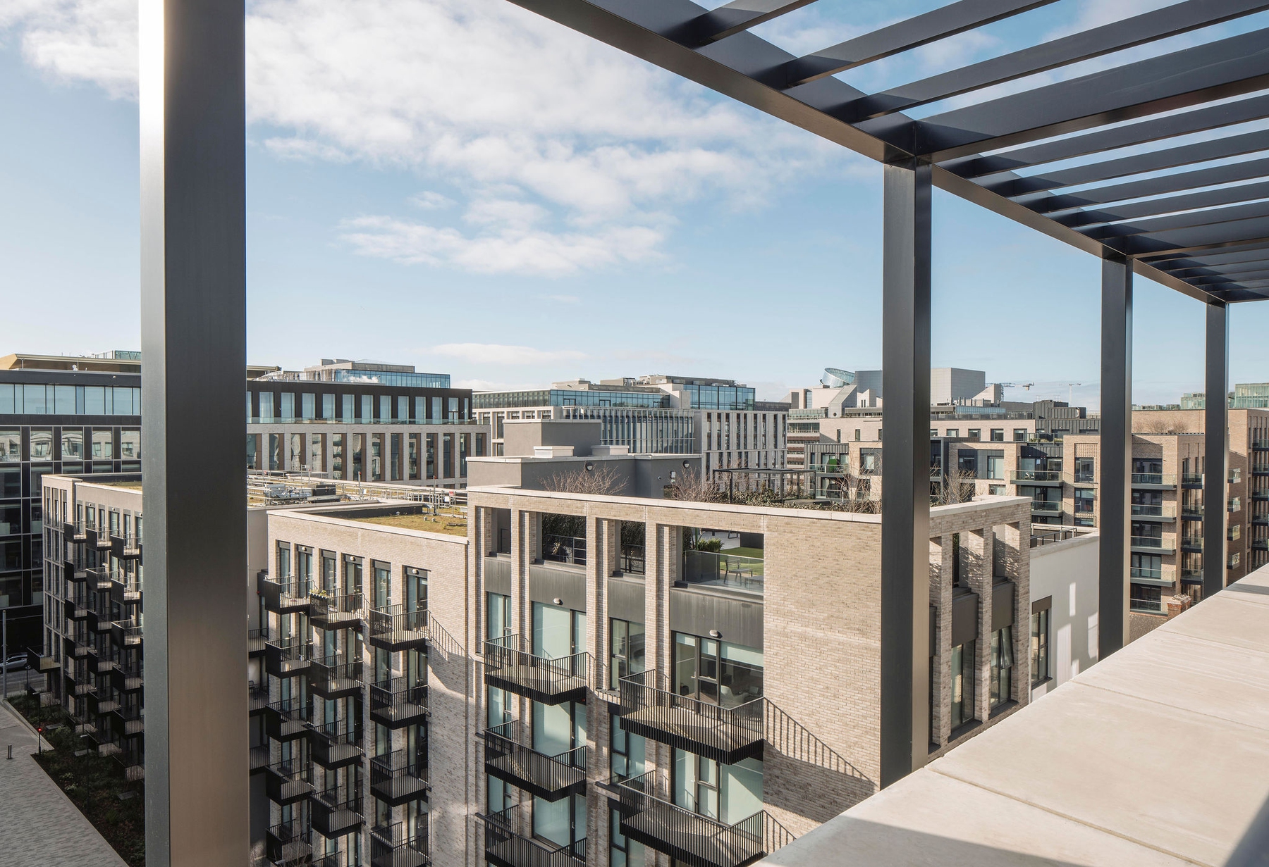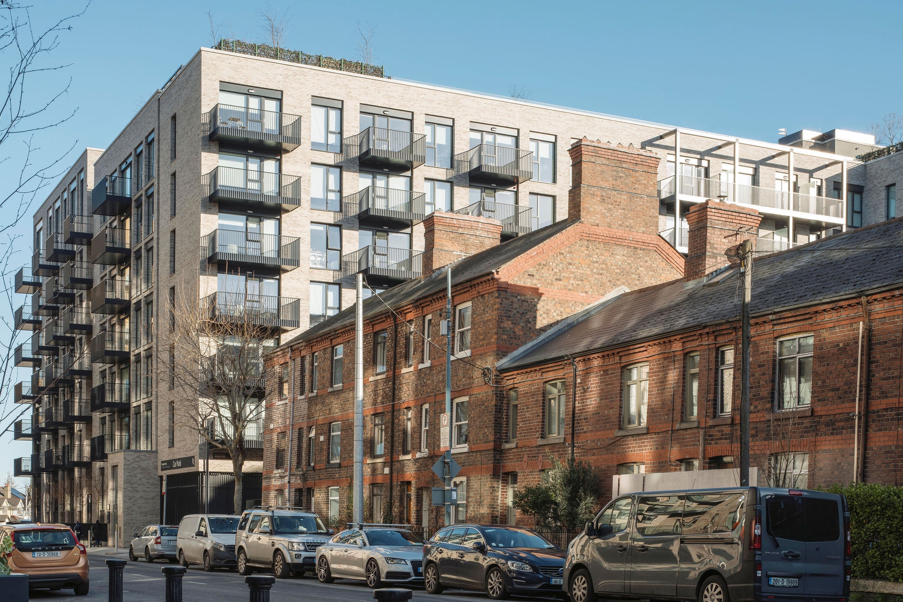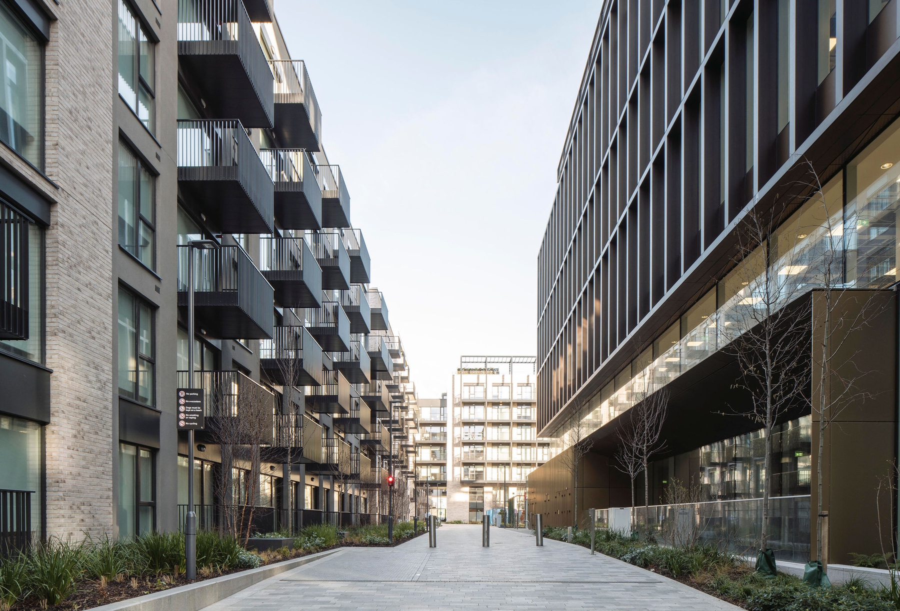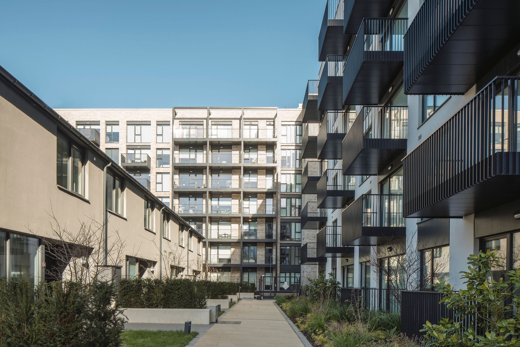 The initial urban strategy was influenced by the existing pattern of development in the docklands which is exemplified by the historic, orthogonal grid laid out in the 18th century. This pattern informed the layout and form of the buildings, open spaces and route ways on the site. The material nature of the scheme takes reference from the existing use of brick in the area, which has traditionally been used in the housing and warehousing in the North Lotts. Variation in the use of brick changes with the scale of the buildings, the proposed houses and smaller scale apartment blocks are clad in brick similar in colour and tone to the existing housing terraces along New Wapping St and Mayor St Upper, while the large scale apartment block is clad in a buff brick similar in colour and tone to the warehousing lining Sheriff St Upper.